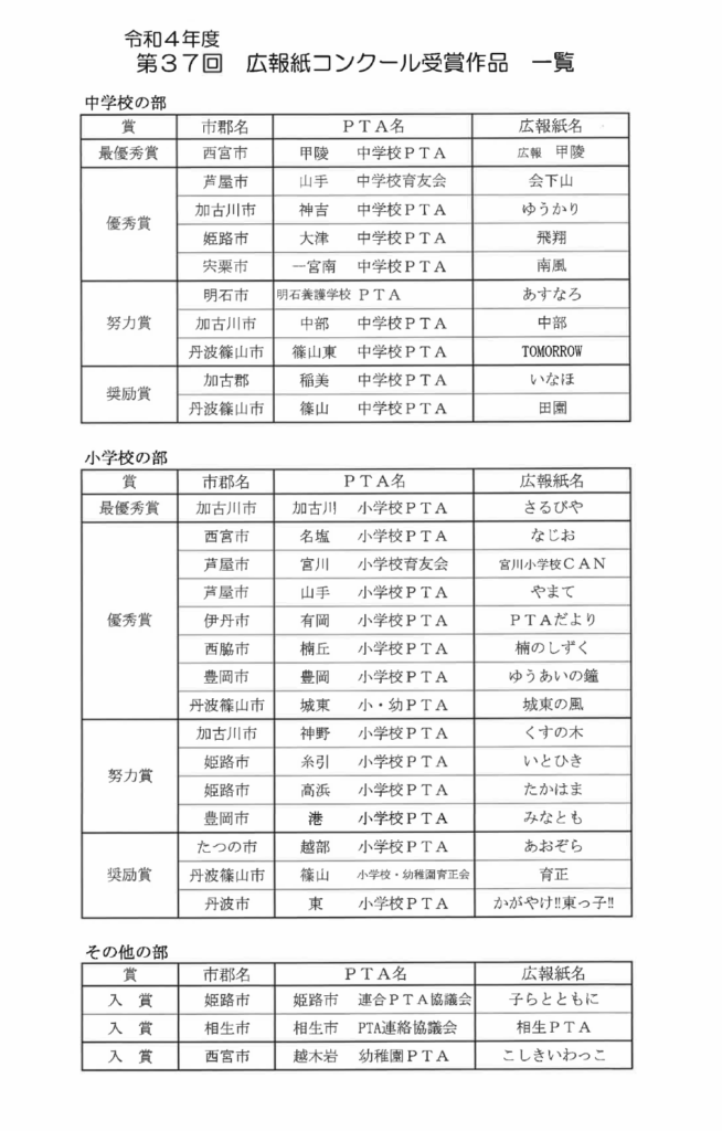 令和4年度の広報紙の制作をさせていただいた加古川市立神吉中学校PTAの広報紙が「令和4年度第37回 兵庫県内小・中学校PTA広報紙コンクール」で優秀賞を受賞しました!
